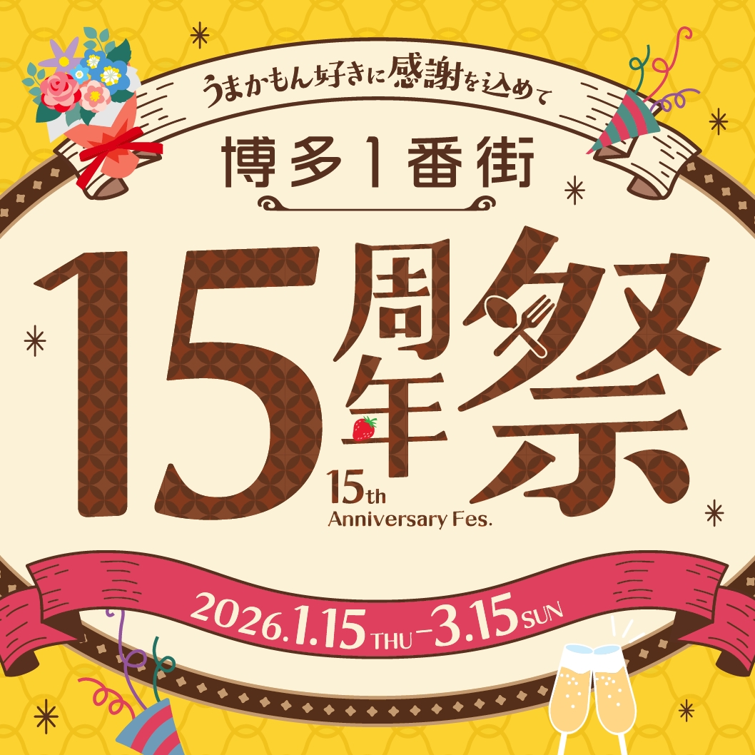 これまでのご愛顧への感謝を込めて「博多1番街15周年祭」を開催いたします!